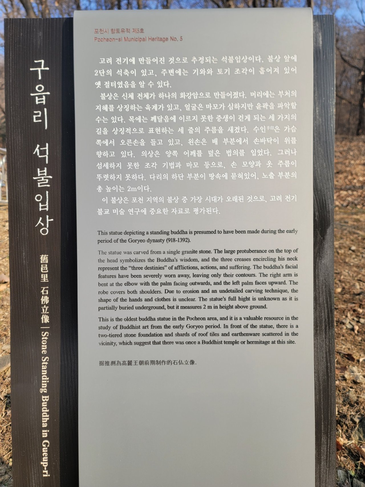 포천향교 보름분향에 참석해 전교님을 비롯한 유림어르신들께 인사드리고 향교 아래 유림회관 신축현장을 둘러보았습니다. 포천유림의 발전을 위한 새로운 터전이 될 유림회관이 성공적으로 건축되길 기원합니다.포천향교 뒤에 위치한 고려전기시대의 구읍리 석불입상도 둘러보며 문화재 관리현황에 대해 잠시 생각해보았습니다.모든 문화재가 훼손되지 않고 본연의 모습과 기운을 잘 지켜나가도록 관리에 힘쓰겠습니다.