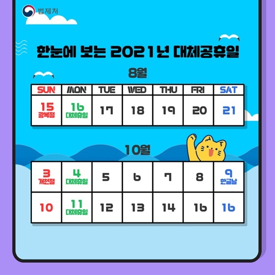 주말 또는 다른 공휴일과 겹칠 경우 대체공휴일로 지정·운영할 수 있도록 했습니다.