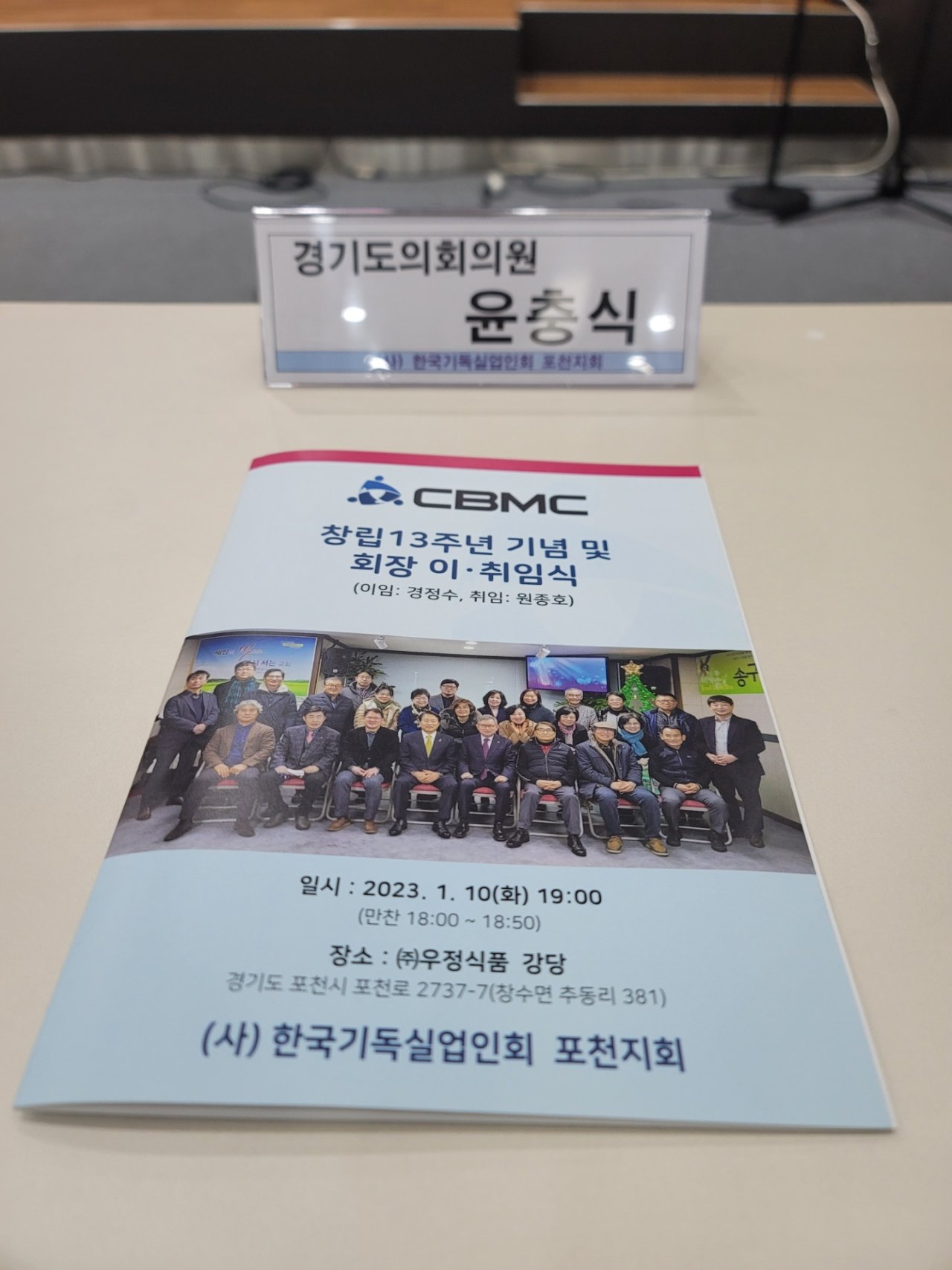 사)한국기독실업인회(CBMC) 포천지회 창립 13주년 및 회장 이·취임식 2023.1.10(화) 주)우정식품 강당