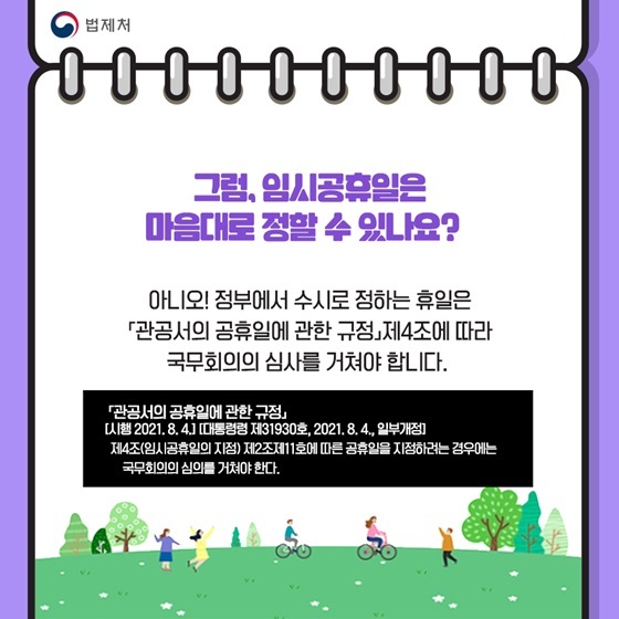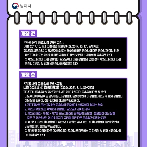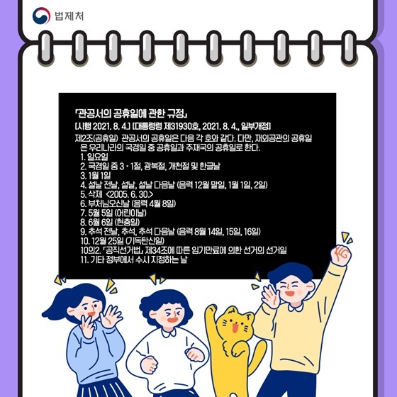 2021년 8월 4일 「관공서의 공휴일에 관한 규정」이 일부 개정되었는데요.