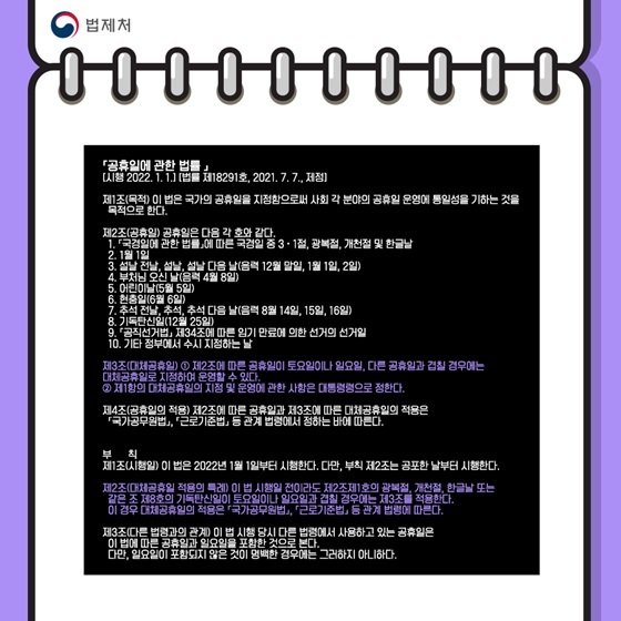 2022년 1월1일부터 시행되는 「공휴일에 관한 법률」에서는