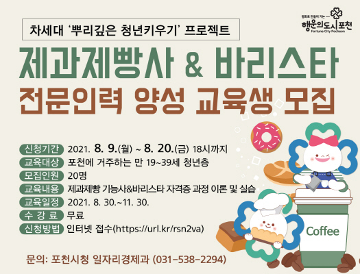 포천시 '뿌리깊은 청년키우기', 제과제빵사&바리스타 교육생 모집세상의 모든 정보 2021. 8. 16. 15:20반응형SMALL