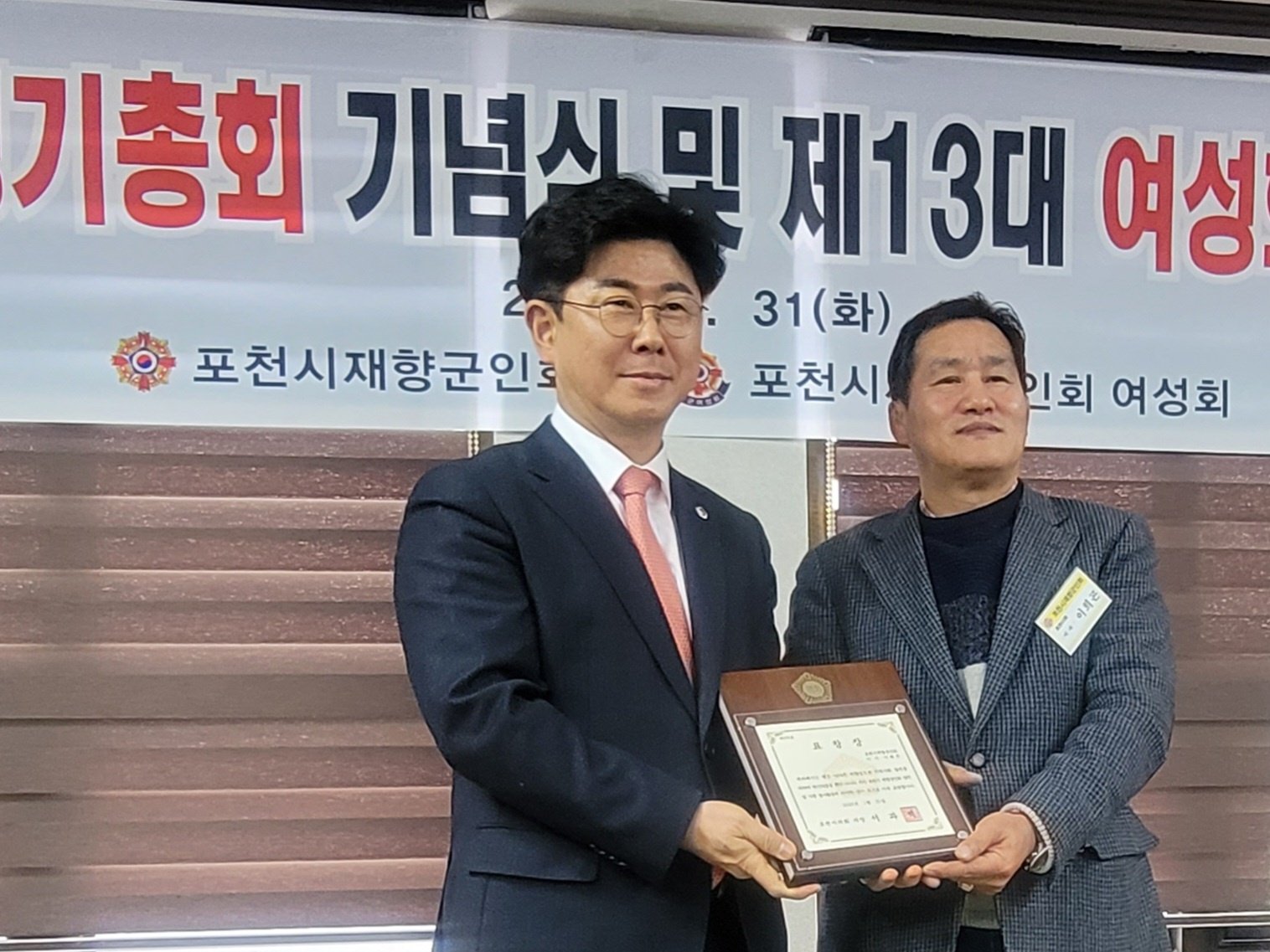코로나 팬데믹 사태속에서도 안보의식 고취와 지역사회 봉사활동에 앞장서오신 포천시 재향군인회 강수영 회장님을 비롯한 임원분들께 감사의 마음을 전하고 최춘식 국회의원님의 표창장을 대리 수여해드렸습니다.