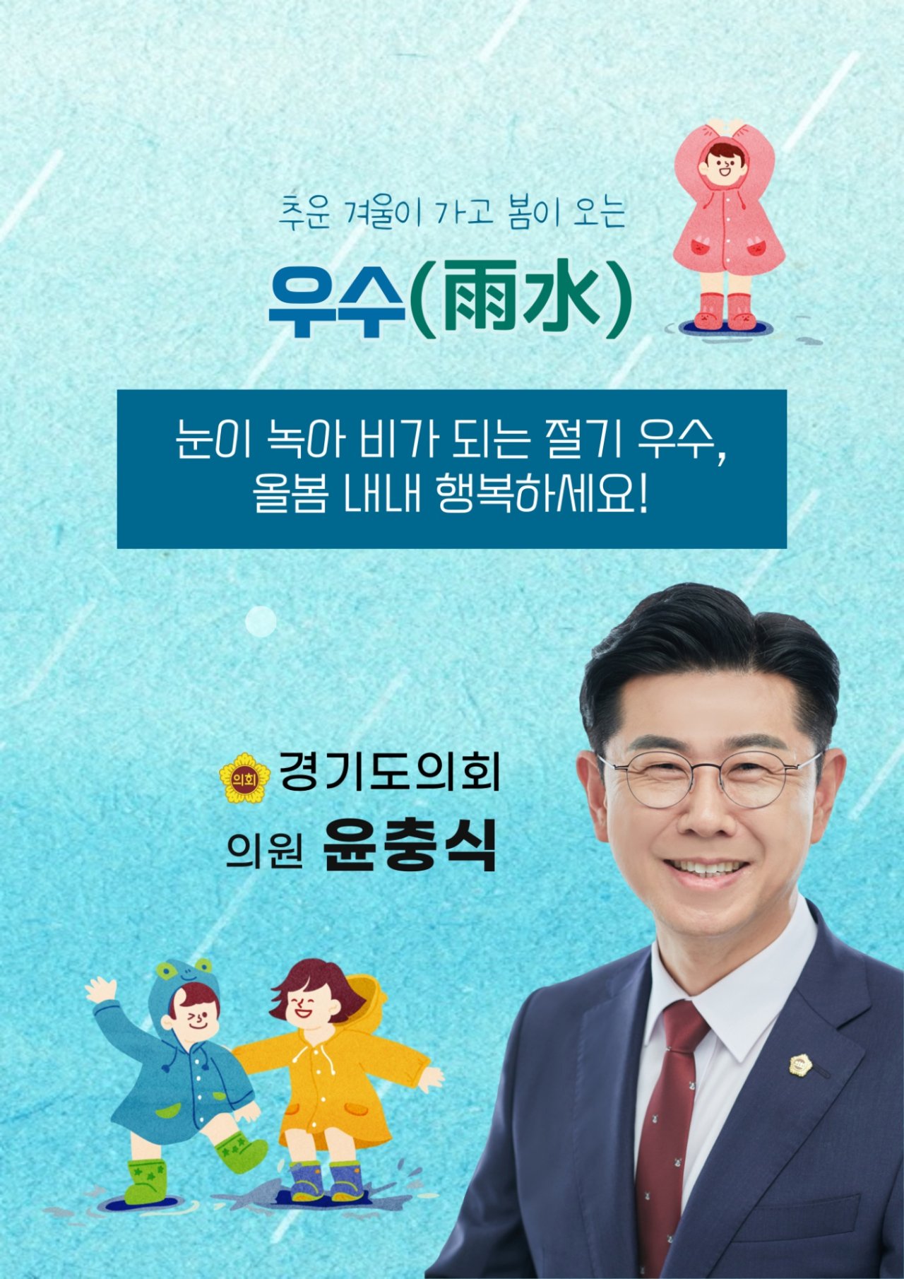 ☔️ 포근한 햇볕에 눈이 비로 바뀌고 강의 얼음이 녹는다는 절기 우수입니다. 겨우내 힘겨웠던 마음은 싱그러운 봄빛으로 녹여내시고 새봄 기분 좋은 일만 가득하시길 바랍니다.