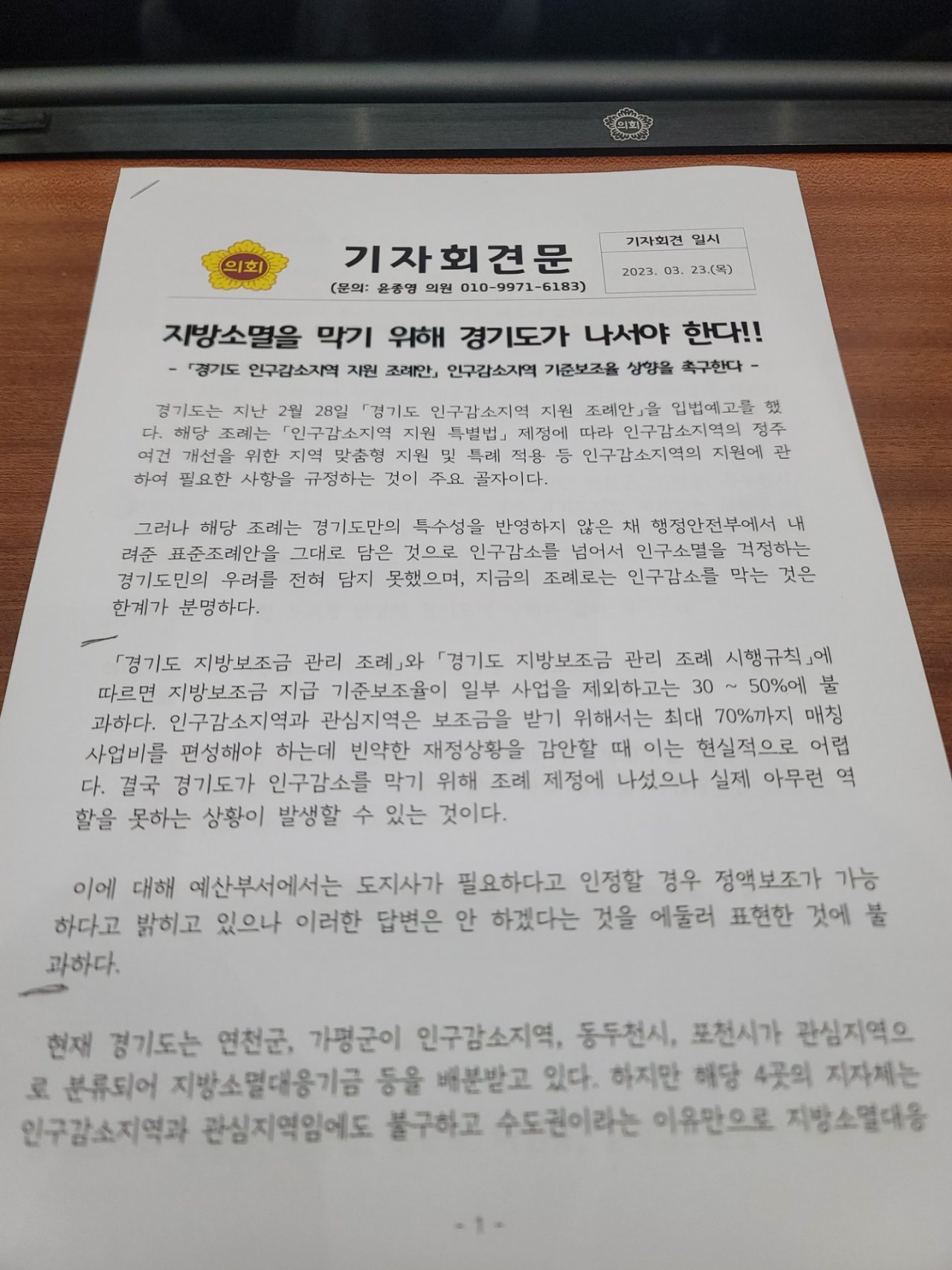 지방소멸을 막기 위해 경기도가 나서야 한다!