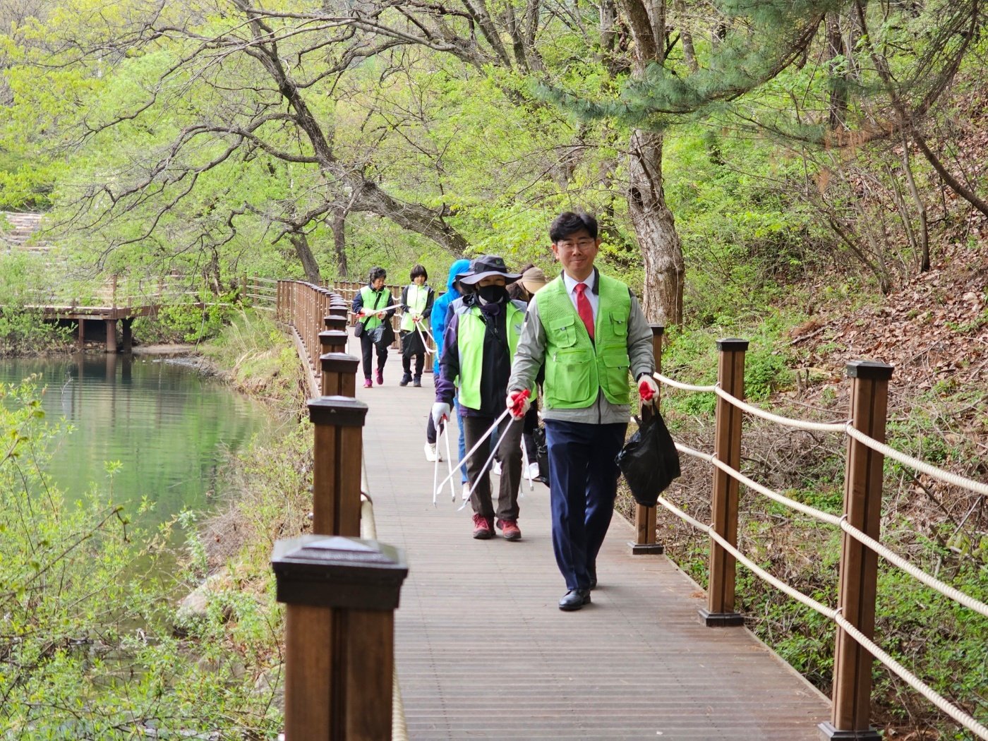 산정호수 둘레길도 걸으며 쓰레기도 줍고 새집도 달아주고 행사와 힐링 두마리 토끼를 다잡은 날이었습니다.