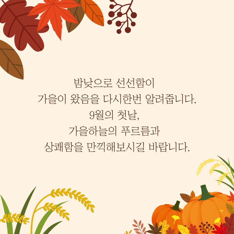 가을의 시작 9월, 새로운 달엔 행복 가득한 일들만 가득하시길 기원합니다.