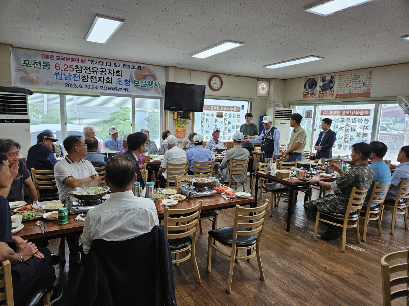 포천동 방위협의회(회장 변하범)에서 6.25참전유공자회, 월남전참전자회 어르신들을 위해 식사대접을 하는 자리에찾아뵙고 감사의 인사를 드렸습니다🫶🏻