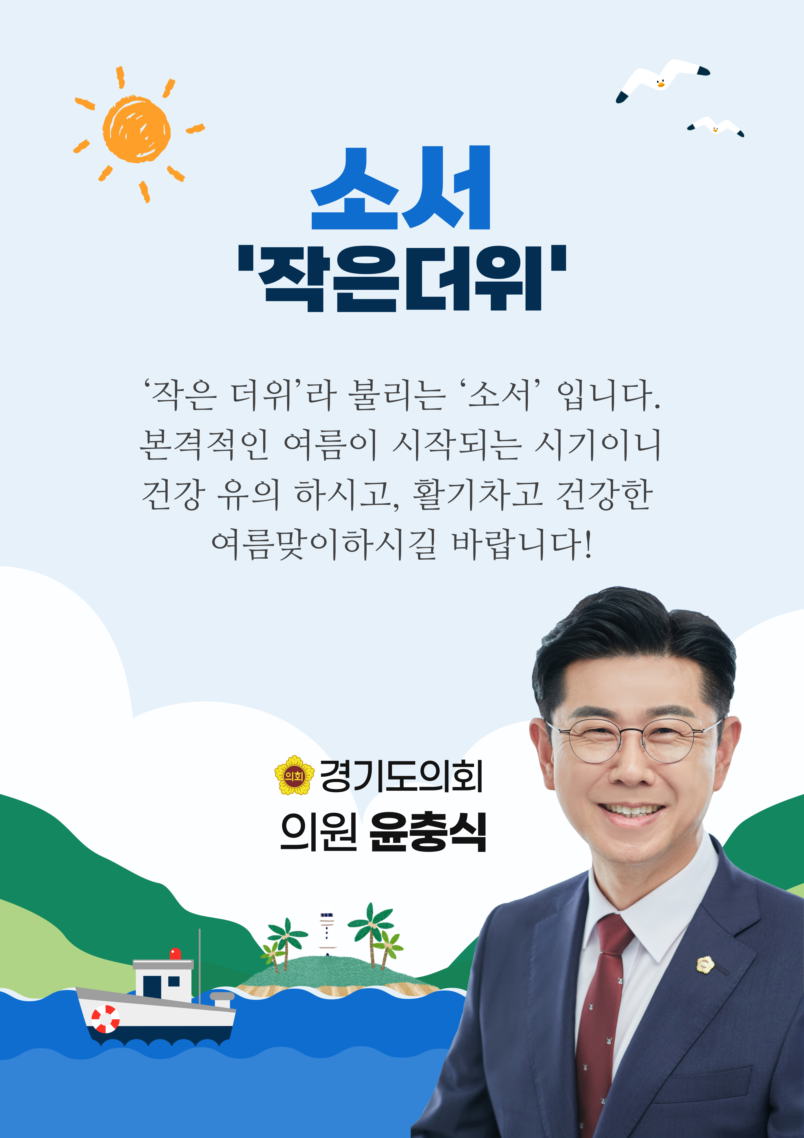 오늘은 여름의 극절기 ‘소서(小暑)’입니다. 무더운 날씨에 건강 유의하시고 올여름 내내 좋은 소식만 들으시길 기원합니다! 시원하고 기분 좋은 하루 보내세요😆