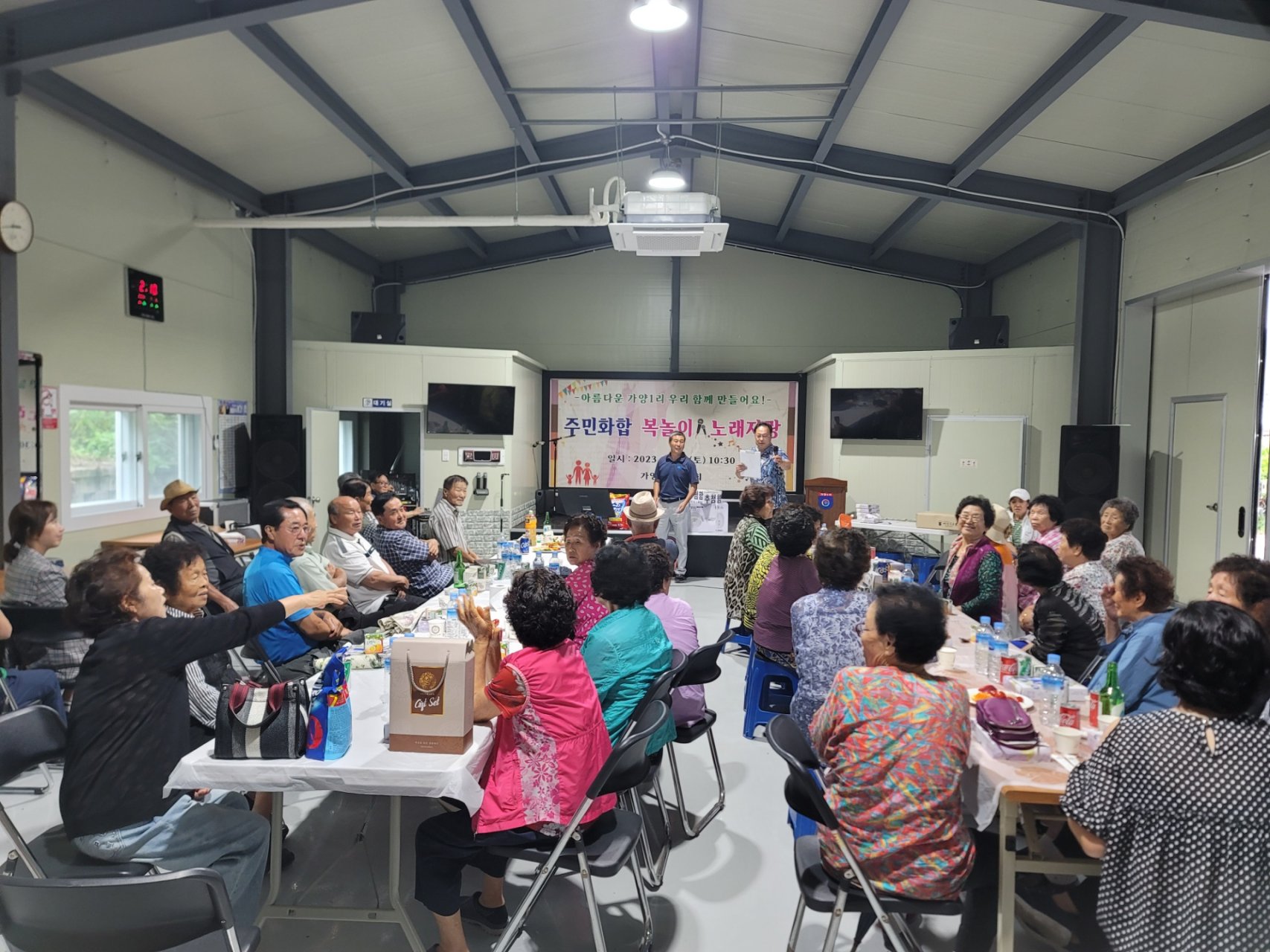 맛있는 음식에 노래자랑대회까지 마을이 떠나가라 들썩이는 화합의 한마당 행복하시는 어르신들의 얼굴에 웃음꽃이 활짝 폈습니다. 상품도 한몫...ㅎ 가양1리 화이팅!!!