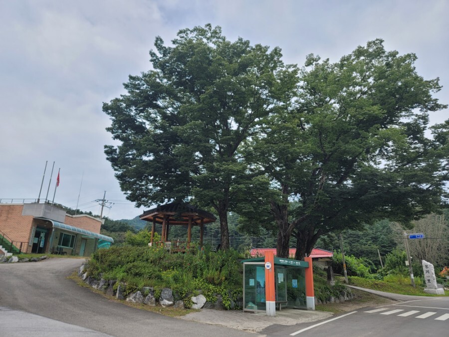 금동1리 마을회관과 보호수로 지정된 느티나무