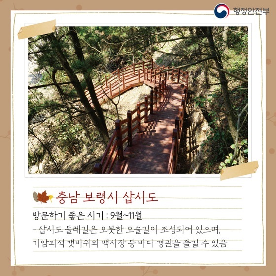 • 삽시도 둘레길은 오붓한 오솔길이 조성되어 있으며,