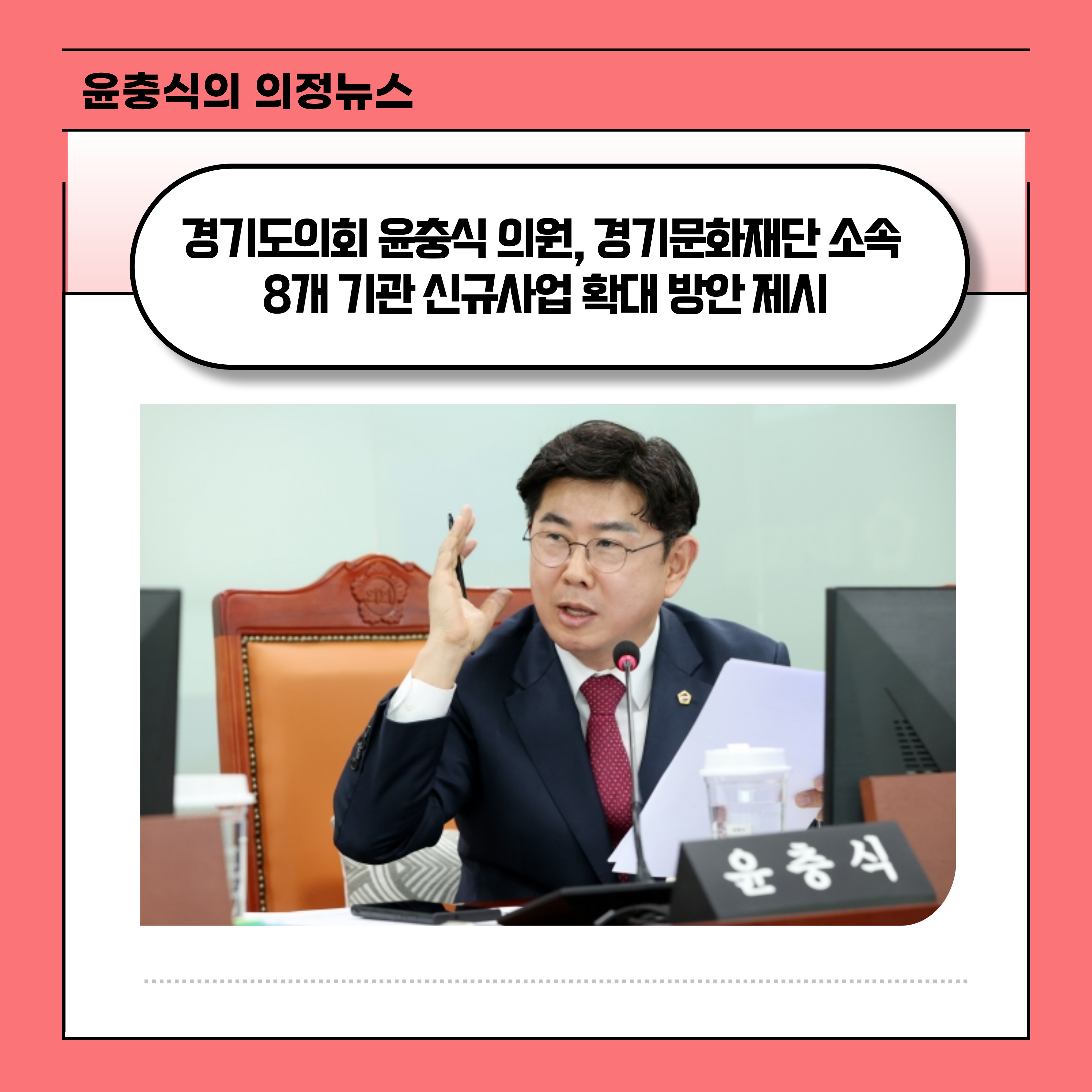 [경인매일] 경기도의회 윤충식 의원, 경기문화재단 소속 8개 기관 신규사업 확대 방안 제시