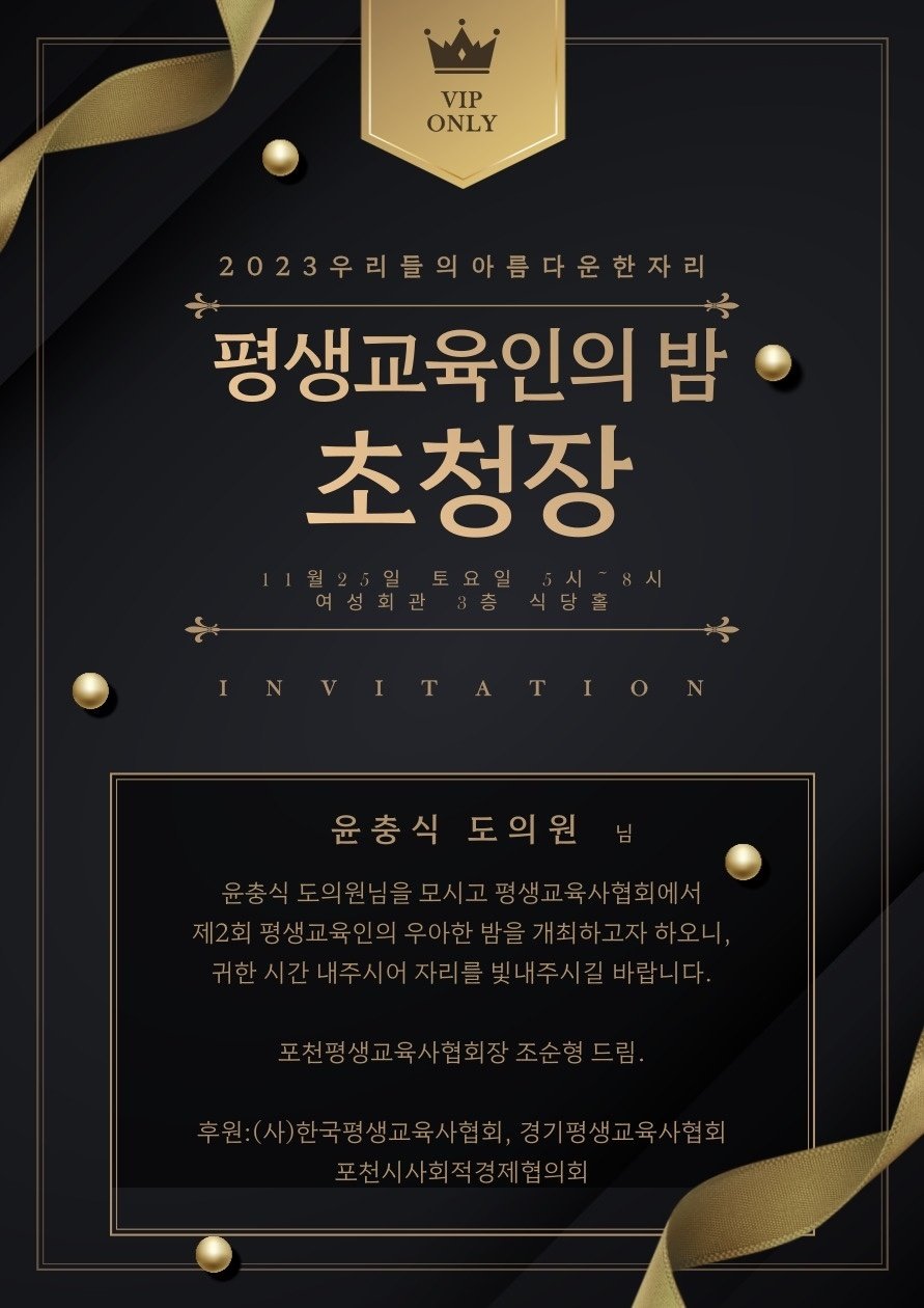조순형 회장님을 비롯한 평생교육인 여러분께서 올 한해 포천시 평생교육을 위해 애써주신 노고에 깊이 감사드립니다.