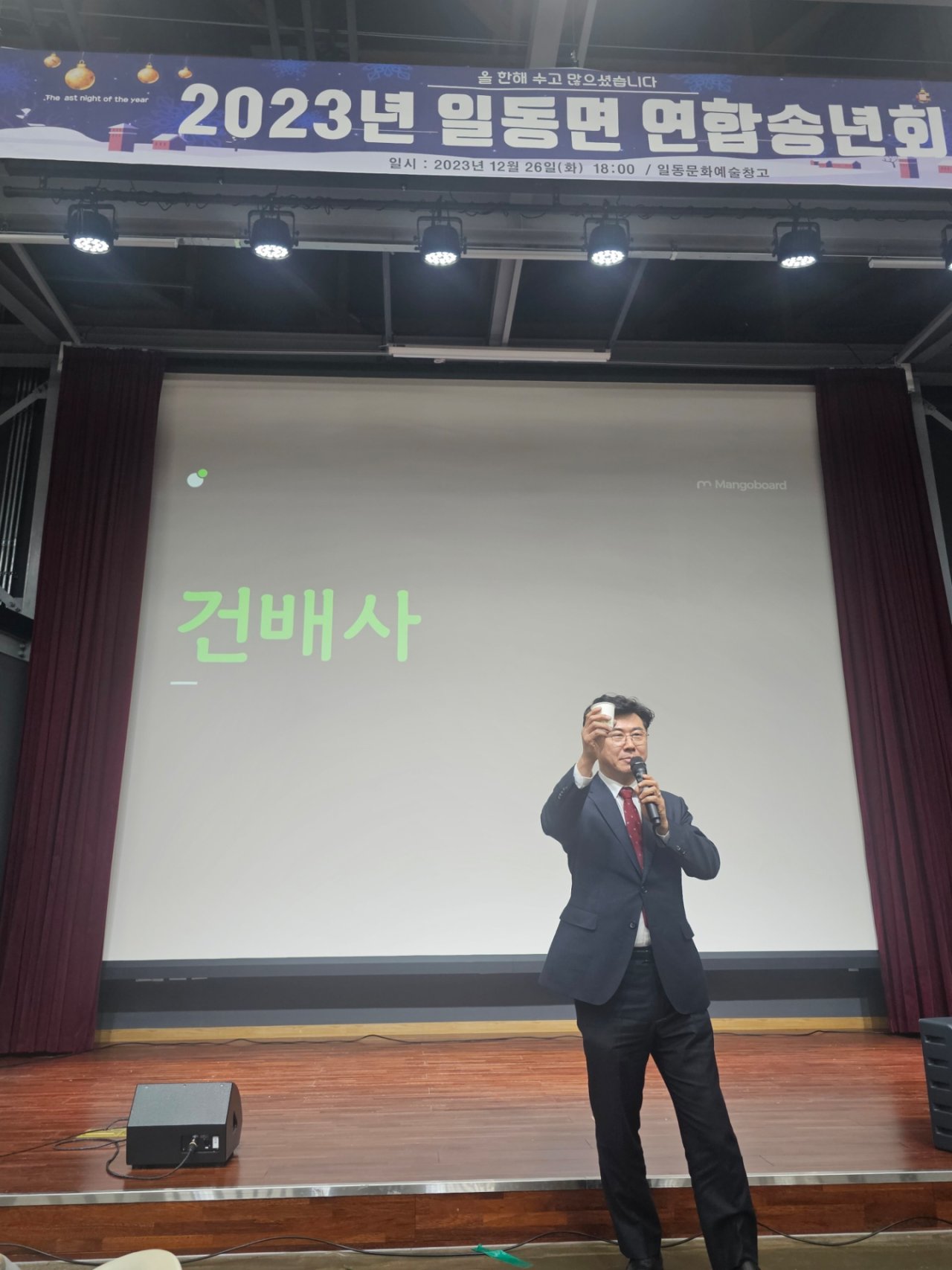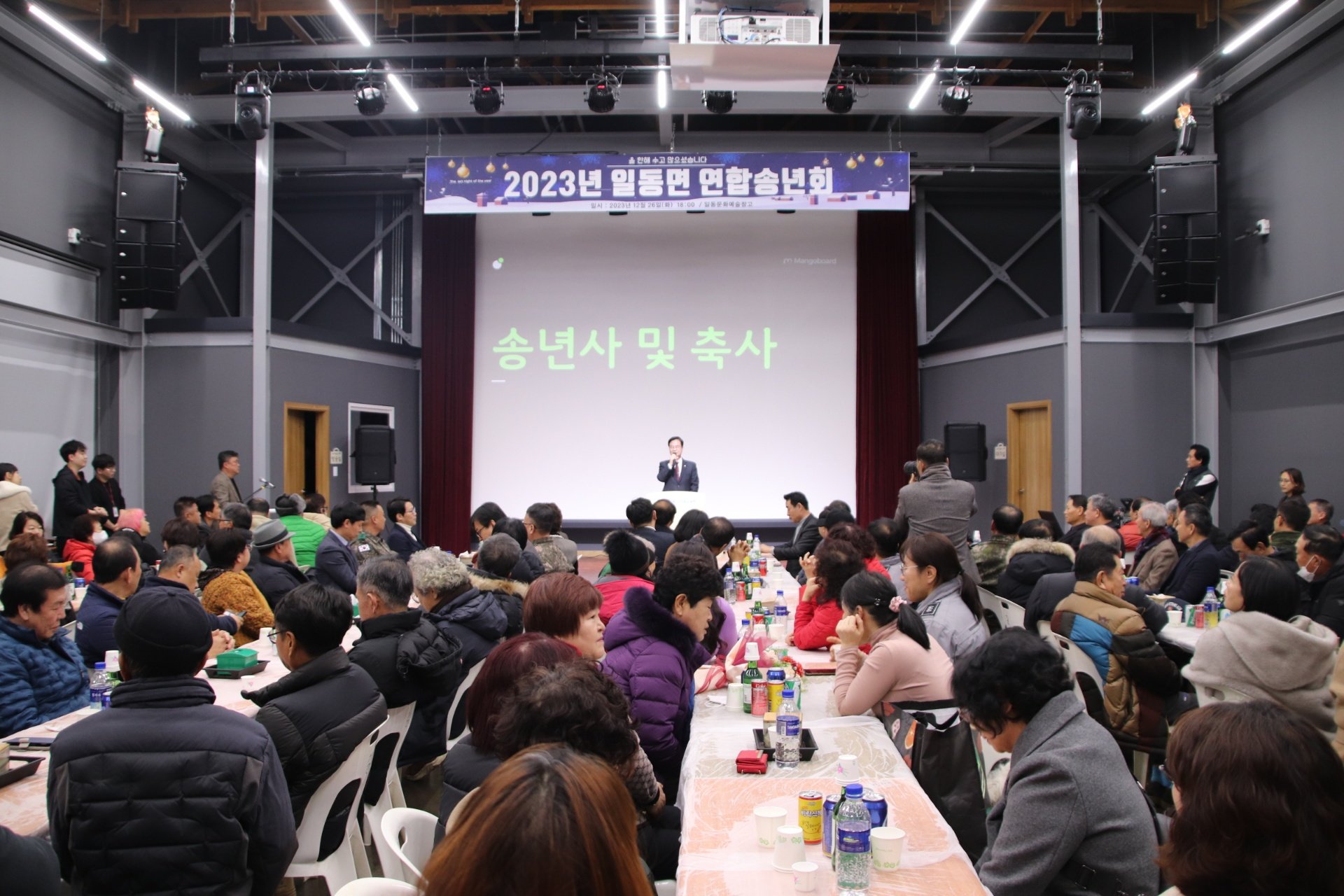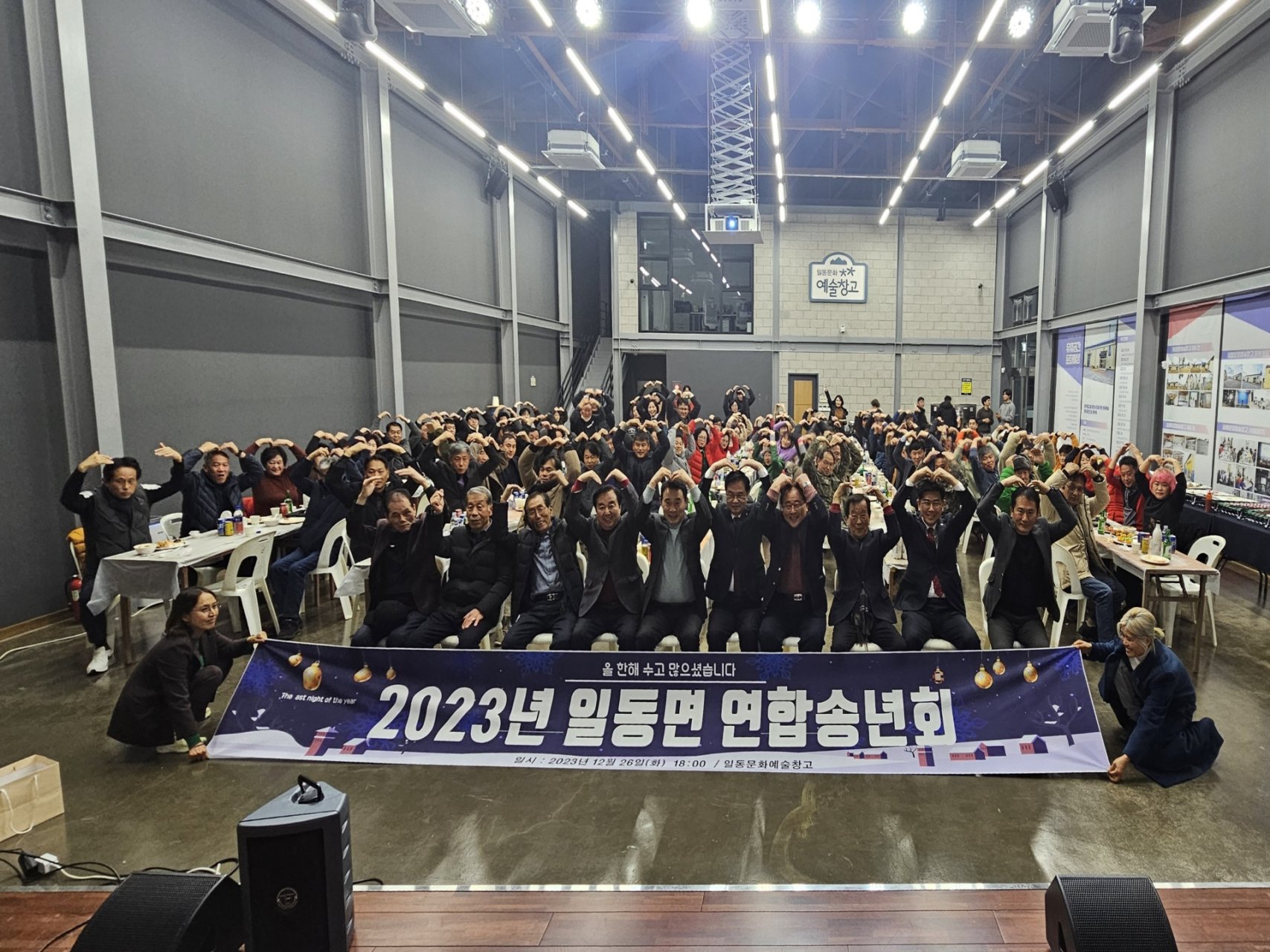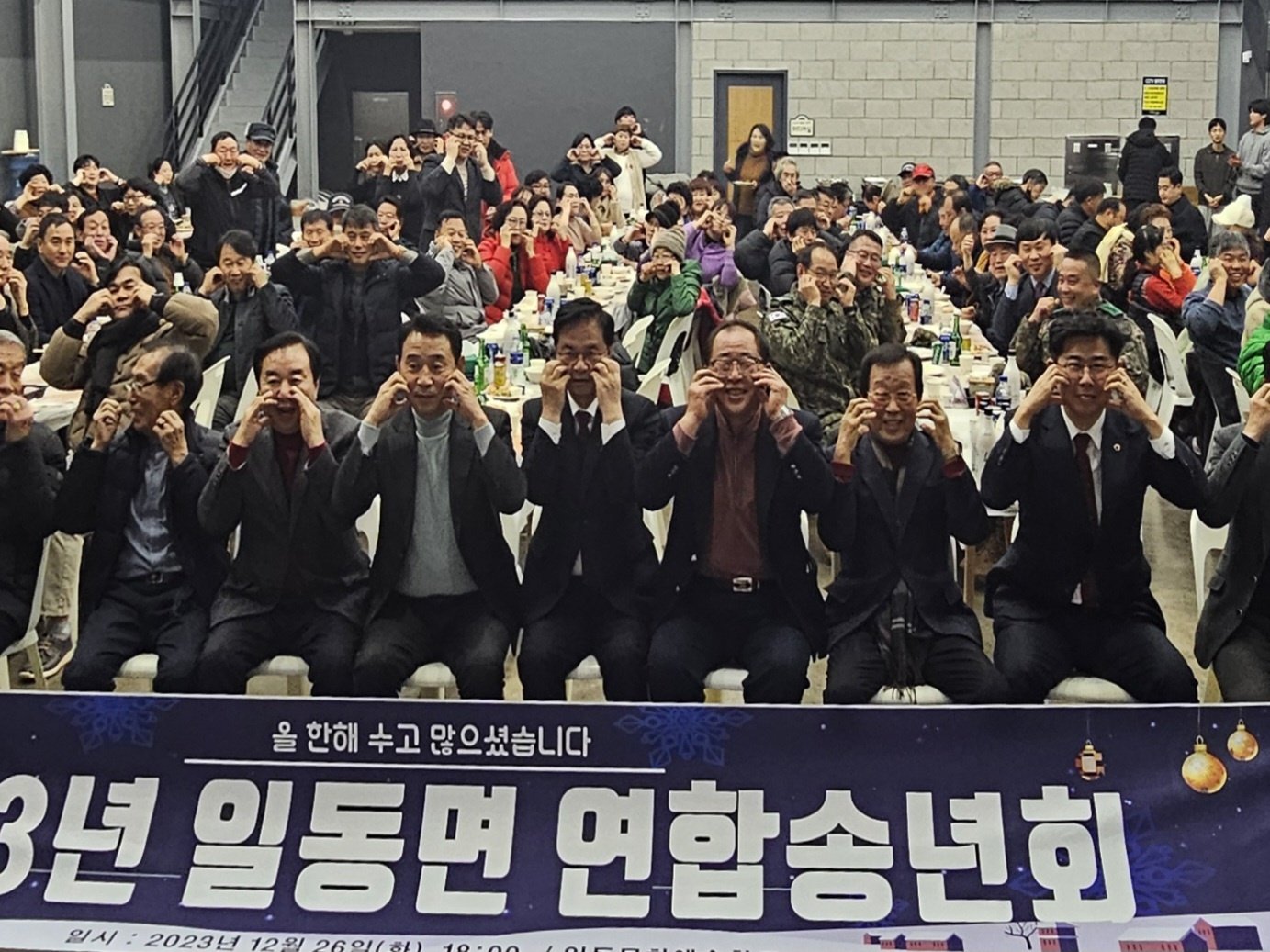 일동면 연합송년회2023.12.26(화) 일동문화예술창고 일동면 단체장협의회(회장 이승권)에서 대승적 결단을 내려 연합송년회를 개최하셨습니다. 바쁜 연말 일정을 확줄여주신 일동면 단체장님들께 감사드립니다^^도전과 혁신으로 한껏 성장한 일동면의 신년행보가 기대됩니다. 일동면의 더욱 큰 발전과 면민의 행복을 기원드립니다.