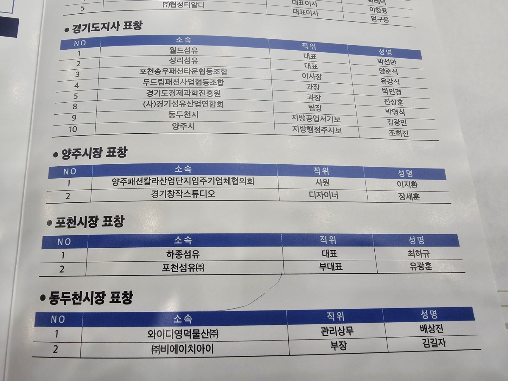 섬유산업 발전에 대한 공로로 표창을 수상하신 모든분께도 축하의 박수를 보내드립니다👏🏻