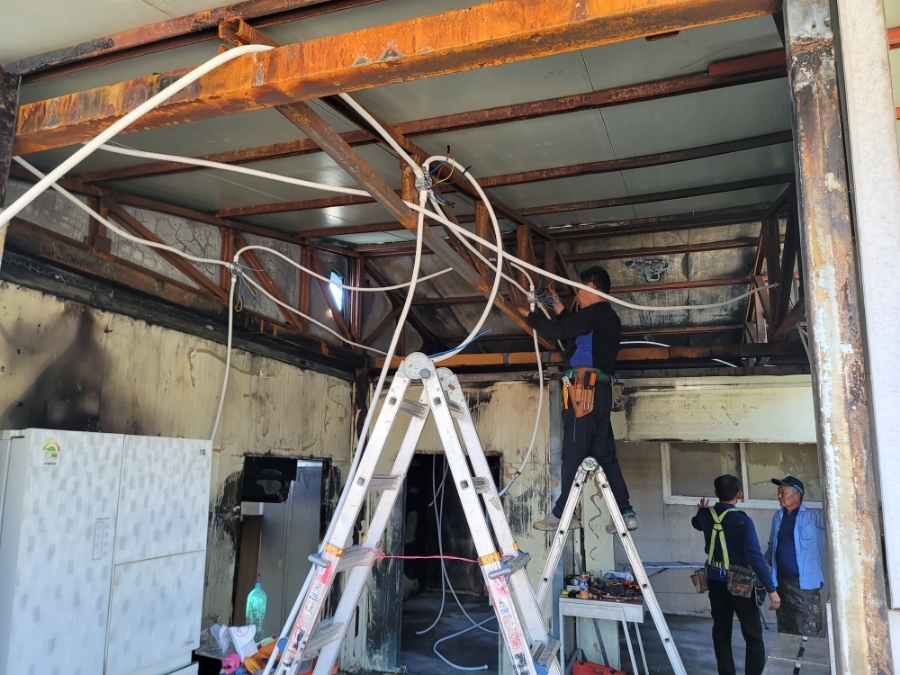 늘 봉사에 앞장스셨던 분이라 그런지 신북면 전현직 이장님들과 주변지인분들의 재능기부로 화마가 휩쓸고간 집을 수리하고 있는 현장을 보며 아직 살만한 세상이구나 하는 생각이 마음속 깊이 들었습니다.