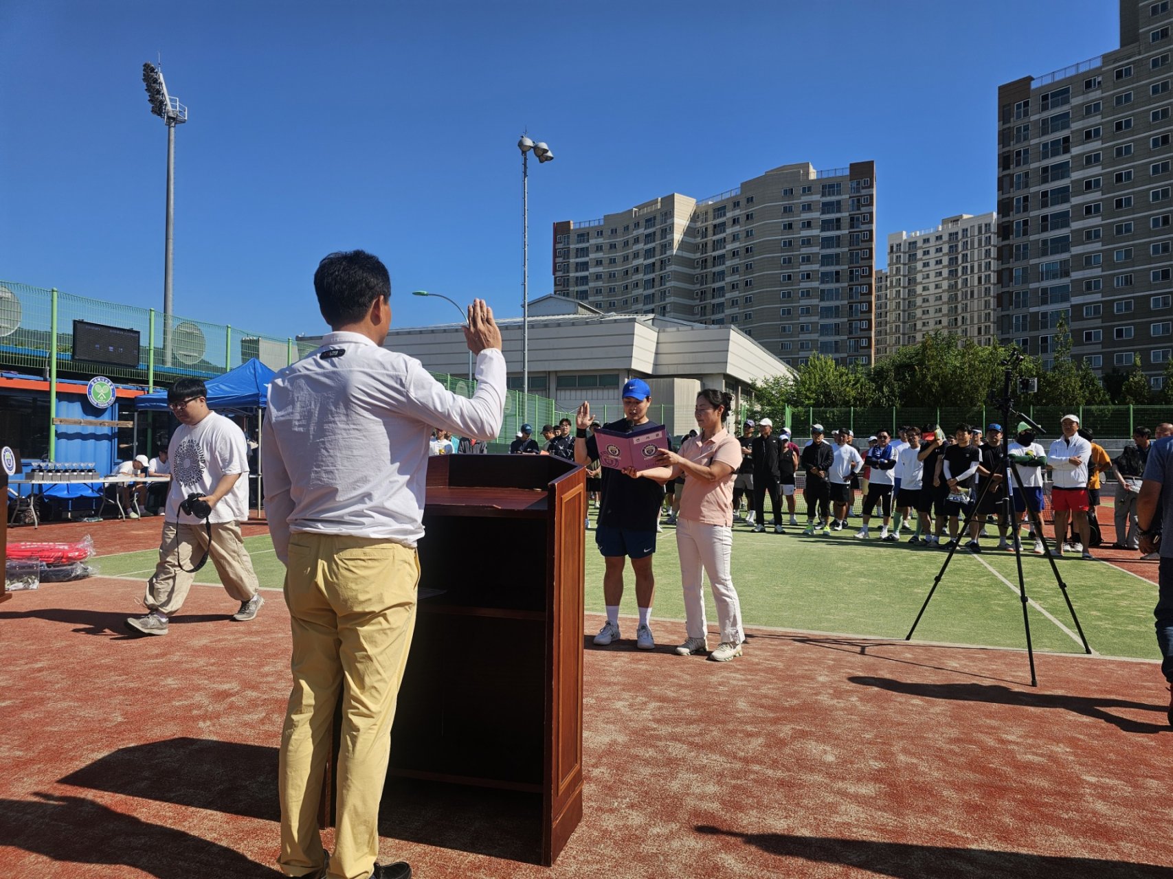 테니스 대회에 참가하는 모든 선수 여러분의 열정과 노력이 결실을 맺기를 기원합니다. 즐거운 경기 되시길 바랍니다!