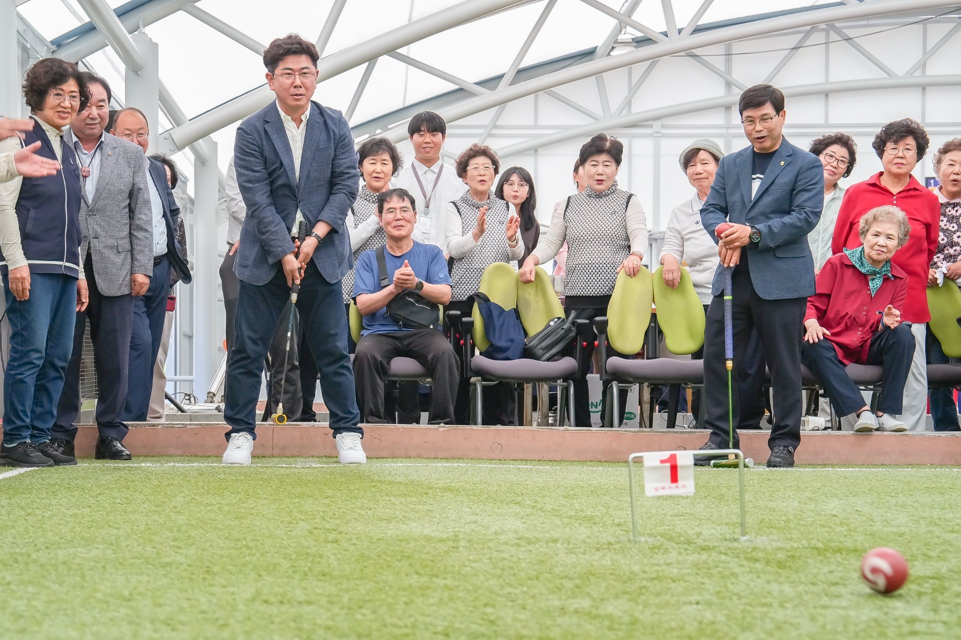 게이트볼은 많은 사람들이 즐기는 스포츠 중 하나입니다. 이번 게이트볼장 시설 개선을 통해 더욱 쾌적한 환경에서 게이트볼을 즐길 수 있게 되어 기쁩니다. 이번 준공식을 축하하며, 앞으로도 게이트볼을 사랑하는 모든 분들이 행복한 시간을 보낼 수 있기 기대합니다😊