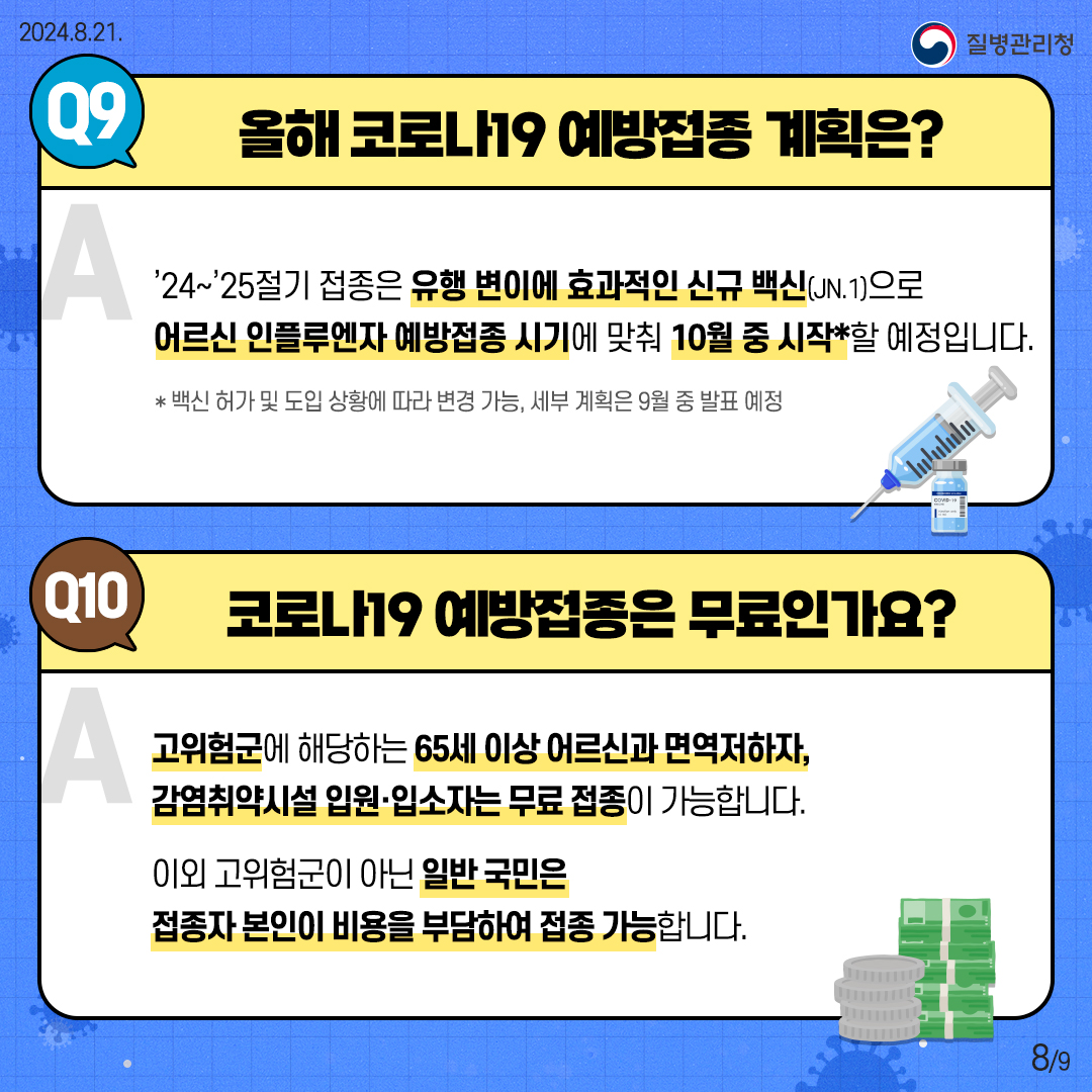 9️⃣ 코로나19 예방접종 계획은?