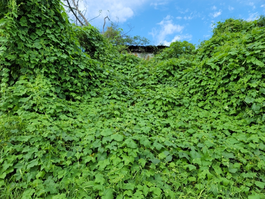 토종식물 죽이고 산책로 덮어 지난 22일 서울 광진구 광장동 인근의 한강변 산책로. 천호대교부터 잠실철교까지 이어지는 1.5㎞ 구간의 강변을 초록색 덩굴식물이 온통 뒤덮고 있었다. 호박잎과 비슷한 모양에 줄기엔 가시