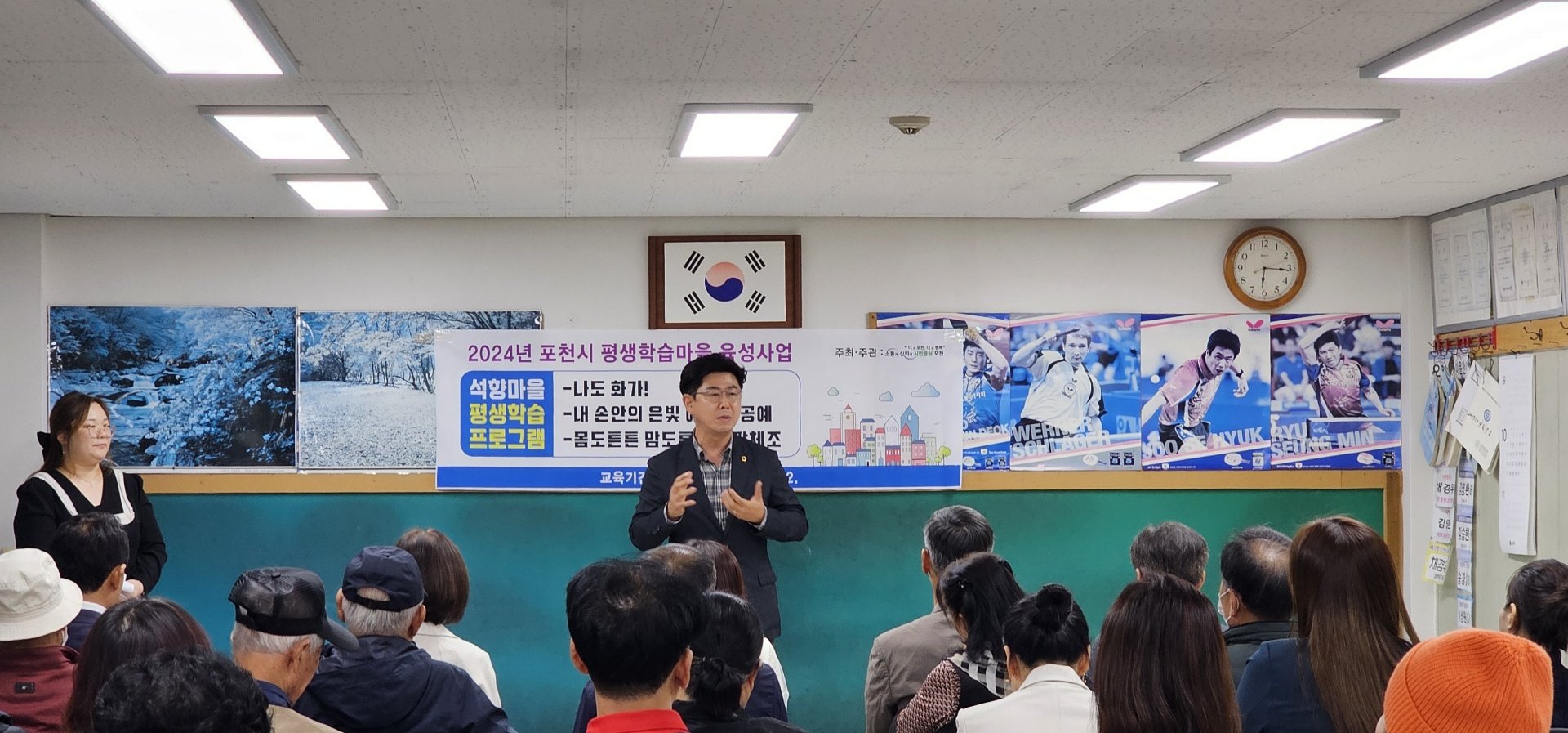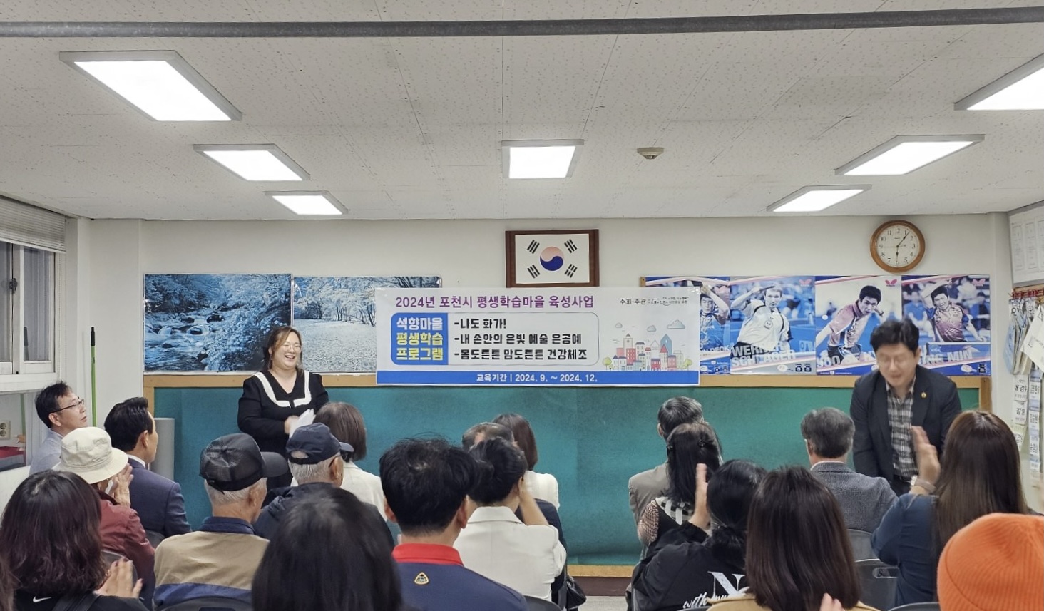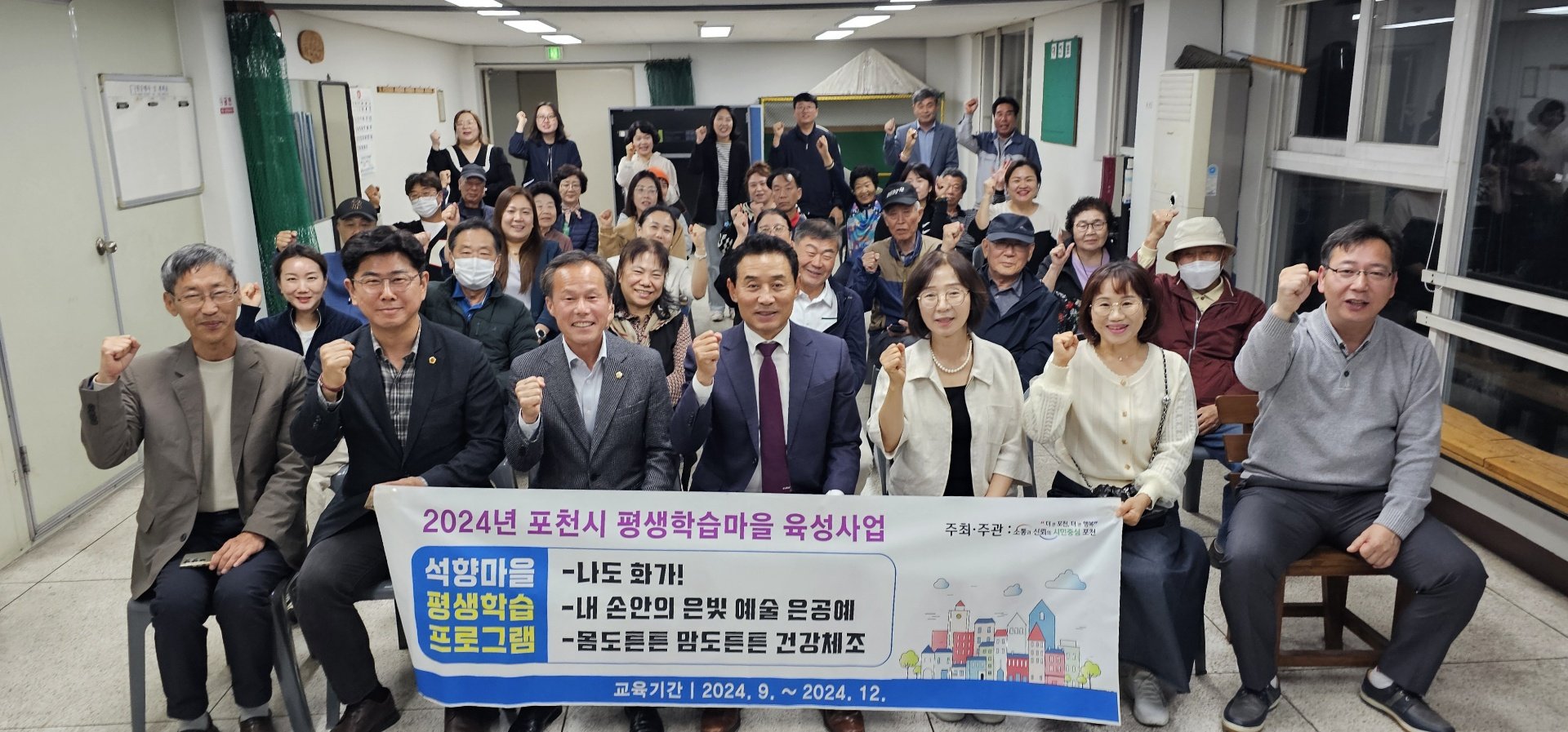 포천시의 평생교육 활성화를 위한 석향학습마을 개강식에 함께하였습니다. 9월 23일 마산2리와 용정1리를 시작으로, 10월 4일 오가2리, 그리고 10월 9일 송우8리까지 총 4개의 마을이 평생학습마을로 새롭게 출발했다고 합니다.